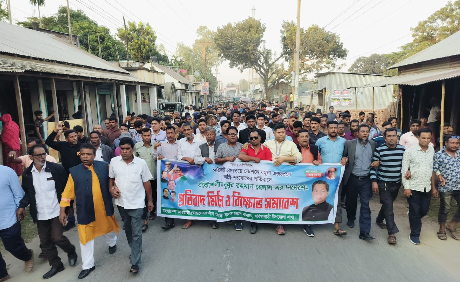 যমুনা ট্রেনে অগ্রি সংযোগকারীদের গ্রেপ্তারের দাবিতে মিছিল ও মানববন্ধন।।