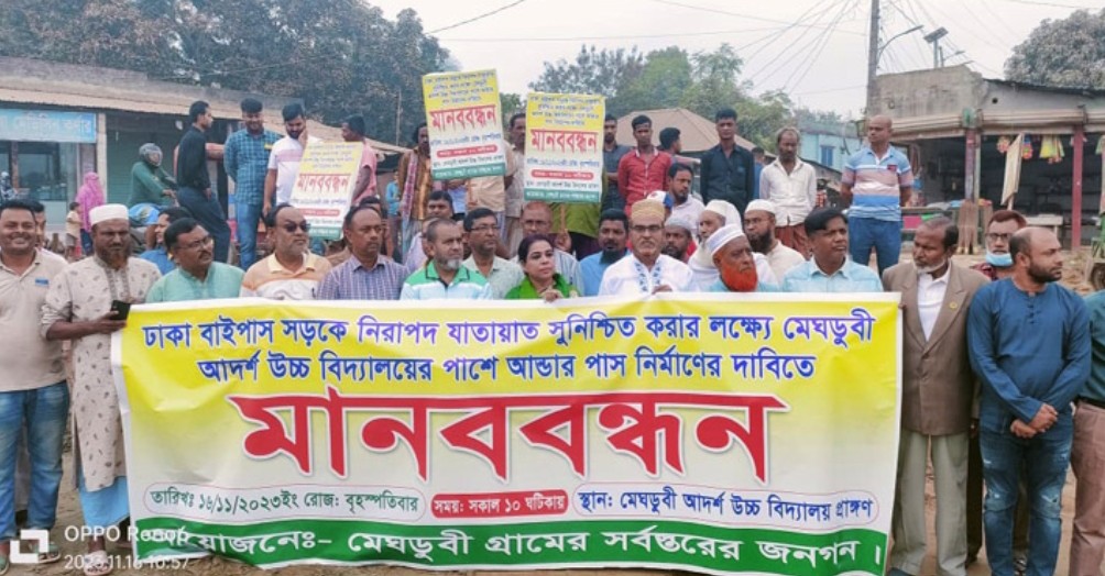ঢাকা বাইপাস সড়কে আন্ডারপাস নির্মাণের দাবিতে মানববন্ধন।।