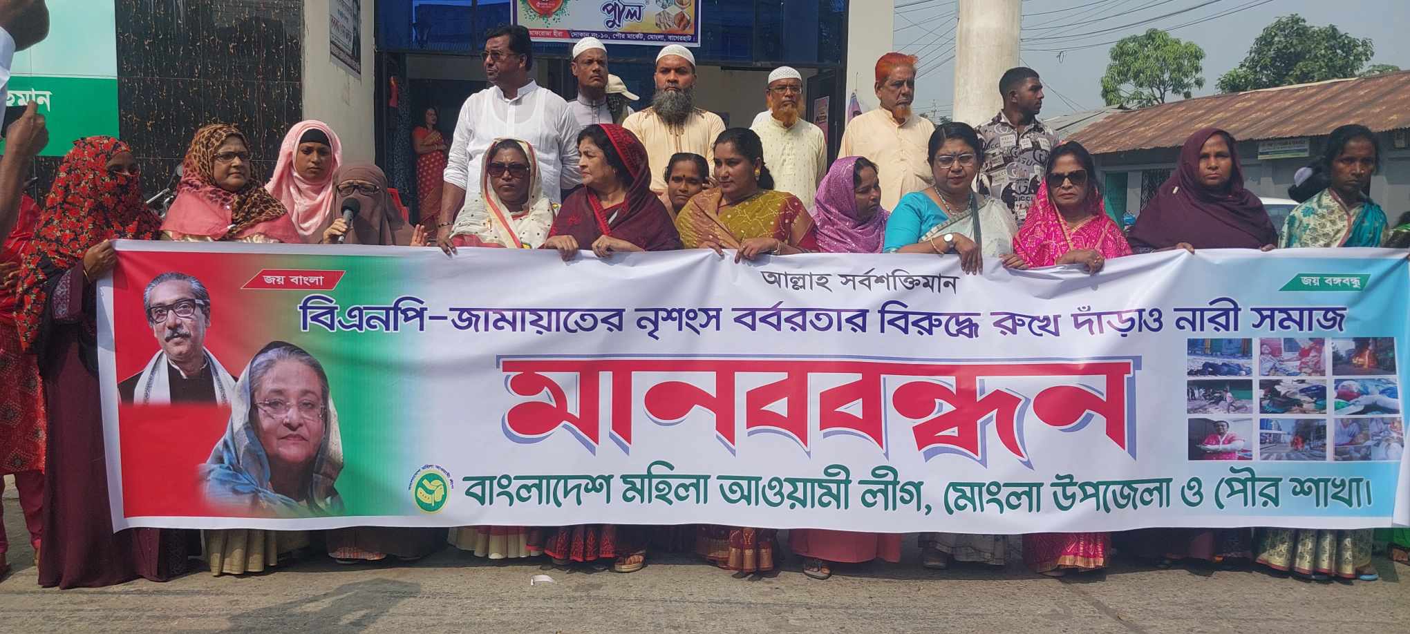 নারীর প্রতি বিএনপি-জামায়াতের সহিংসতার প্রতিবাদে মানববন্ধন।।