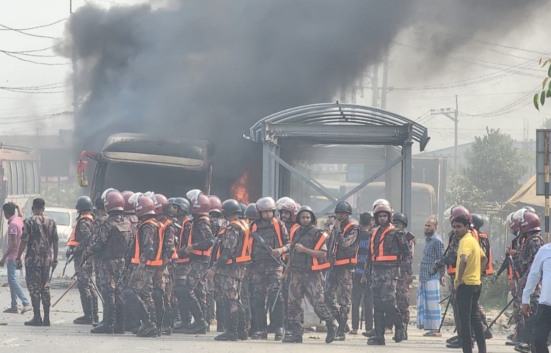 গাজীপুরে শ্রমিক আন্দোলন অব্যাহত দুটি বাসে আগুন।।