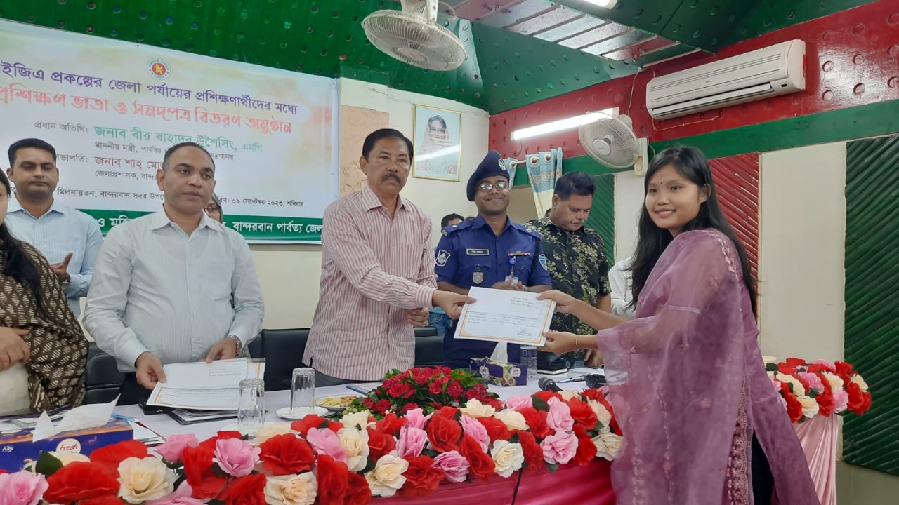 বান্দরবানের নারীদের মাঝে প্রশিক্ষণ ভাতা ও অনুদানের চেক তুলে দেন মন্ত্রী