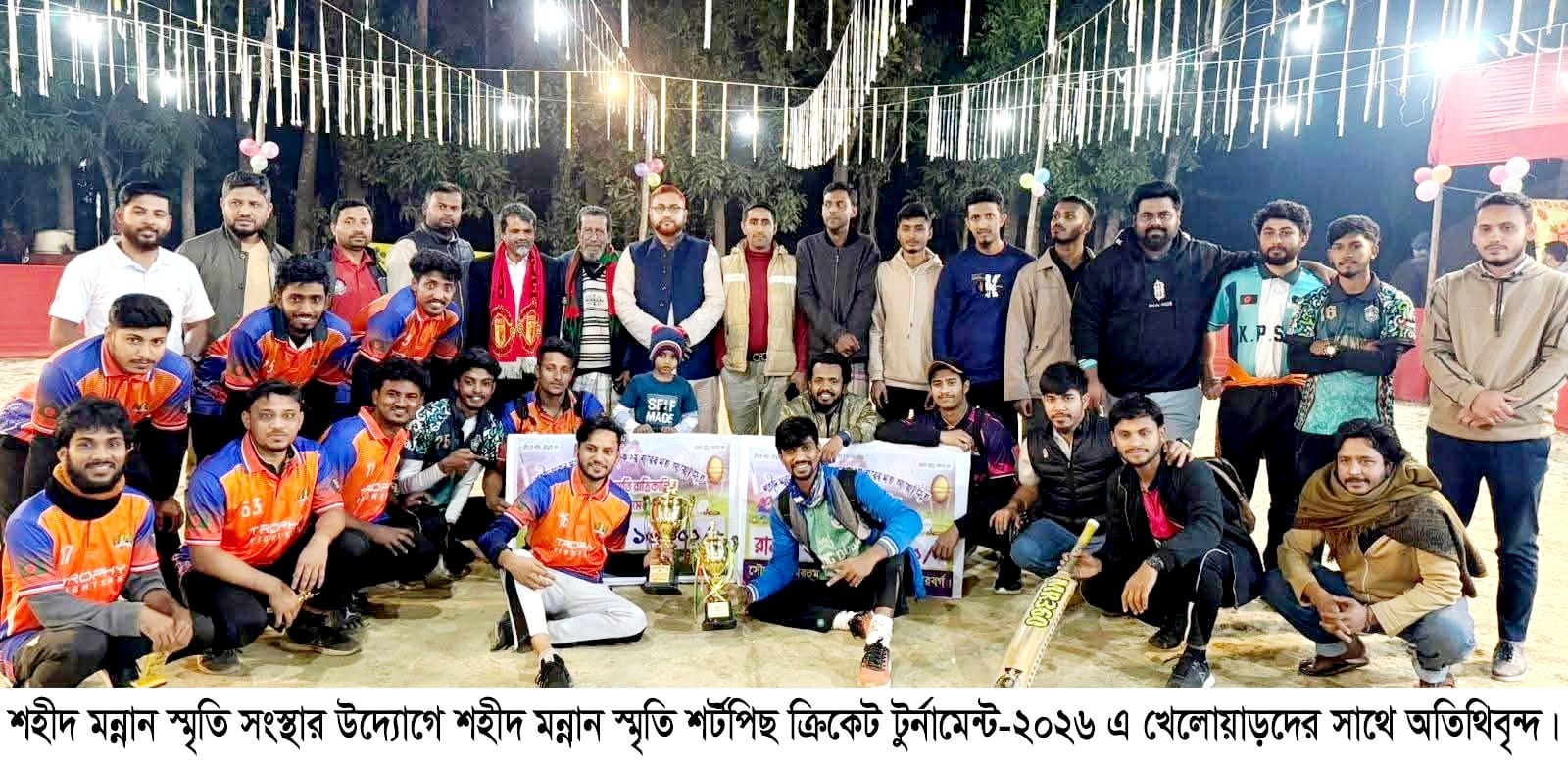 শহীদ মন্নান স্মৃতি সংস্থার উদ্যোগে শহীদ মন্নান স্মৃতি শর্টপিছ ক্রিকেট টুর্নামেন্ট-২০২৬ অনুষ্ঠিত
