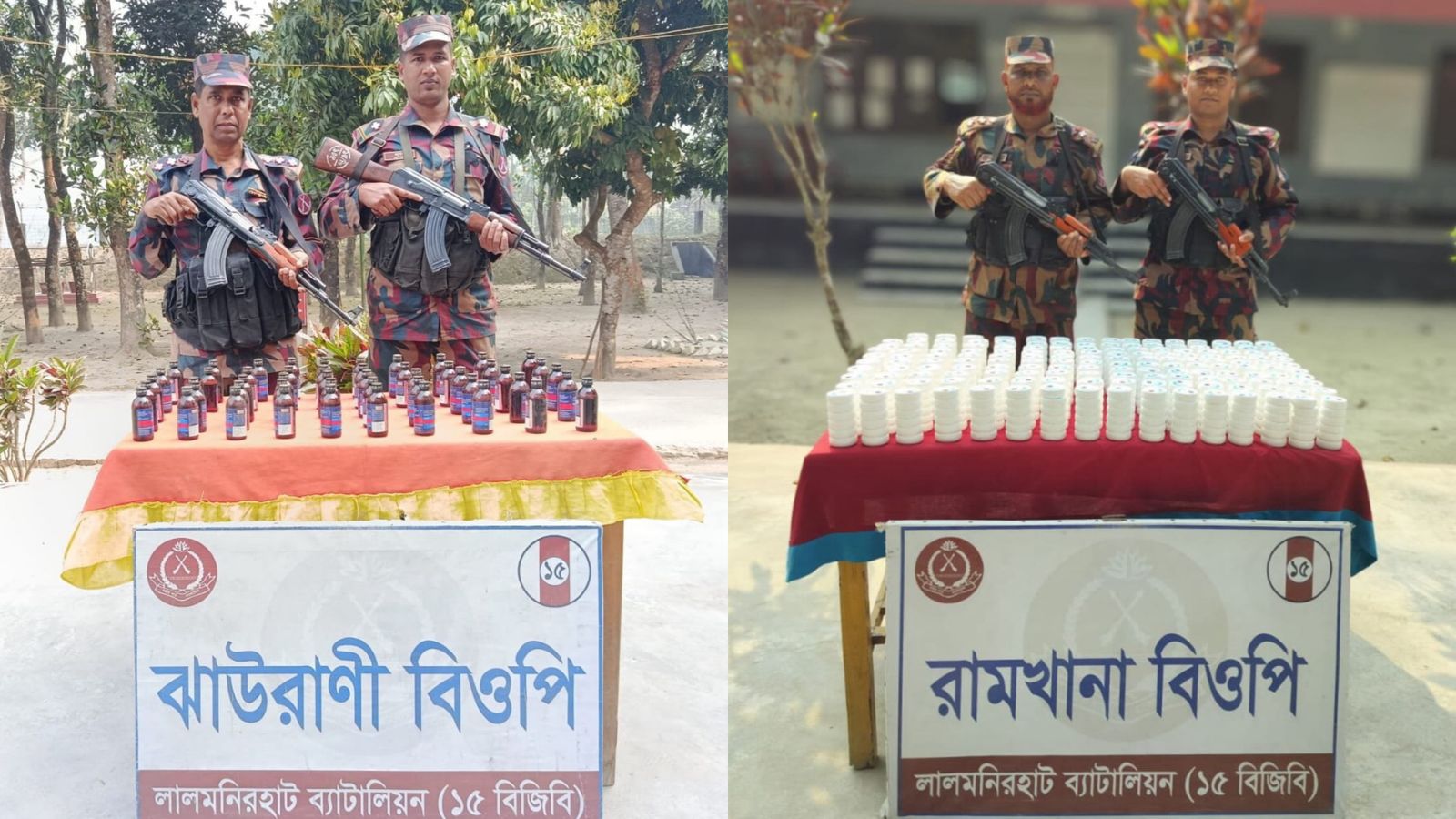 কুড়িগ্রাম ও লালমনিরহাট সীমান্তে বিজিবির বিশেষ অভিযান; বিপুল পরিমাণ কসমেটিকস ও মাদক জব্দ