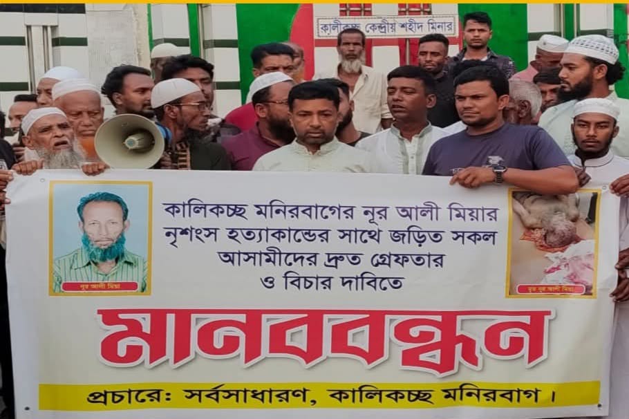 সরাইলে নুরু আলী হত্যাকান্ডে জড়িতদের গ্রেফতারের দাবিতে মানববন্ধন