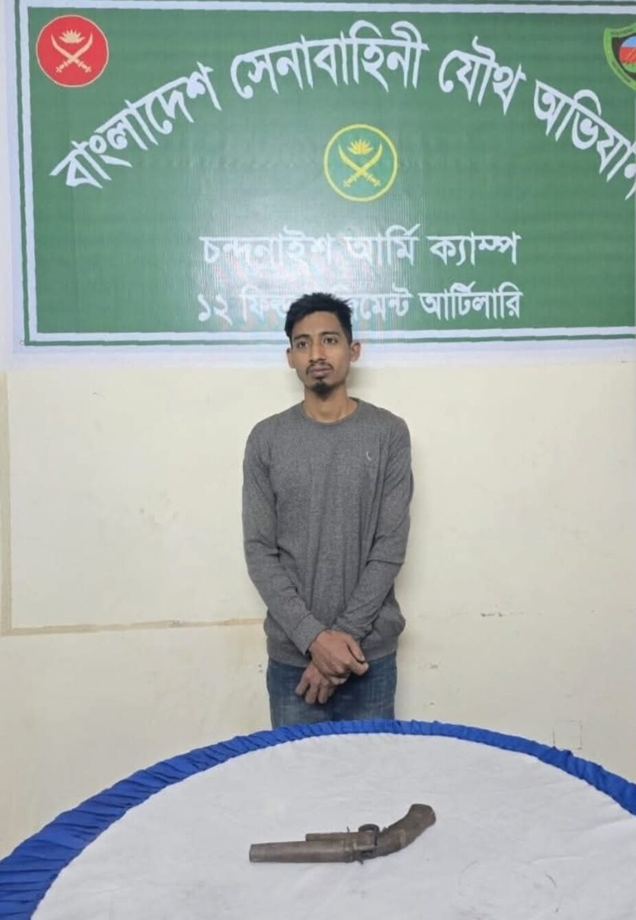 চন্দনাইশ প্রতিনিধি: চট্টগ্রামের চন্দনাইশে গোয়েন্দা তথ্যের ভিত্তিতে আইনুল করিম (২১) নামে এক ব্যক্তিকে (০১×এলজি) অস্ত্র সহ আটক করা হয়েছে। গত