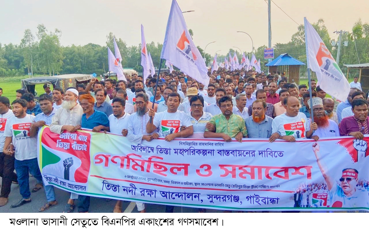 তিস্তা মহাপরিকল্পনা বাস্তবায়ন নিয়ে ভাসানী সেতুতে বিএনপির একাংশের গণমিছিল