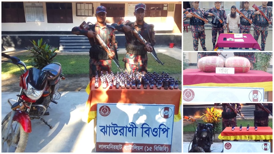 লালমনিরহাট ব্যাটালিয়নের ৫ অভিযানে ১ মাদক কারবারী আটক: দুই মোটরসাইকেল, ইয়াবা ও বিপুল গাঁজা জব্দ