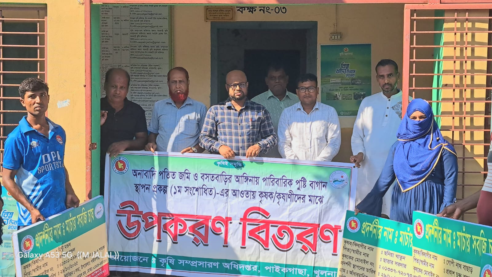 এম জালাল উদ্দীন, খুলনা: খুলনার পাইকগাছায় কৃষকদের মাঝে পারিবারিক পুষ্টি বাগান স্থাপনের উপকরণ বিতরণ করা হয়েছে। বৃহস্পতিবার (২৩ অক্টোবর) দুপুরে