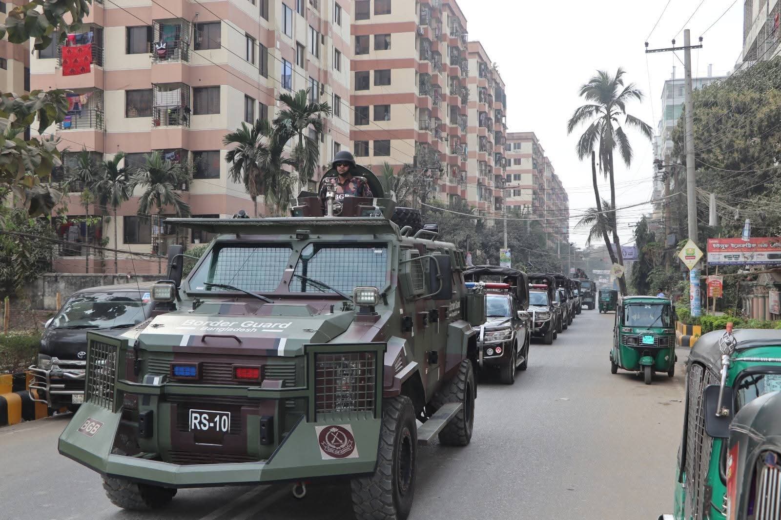 নির্বাচনের নিরাপত্তা জোরদারে ঢাকায় যৌথবাহিনীর ফুট পেট্রোল মহড়া