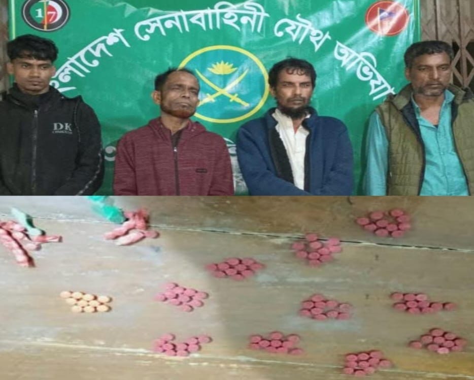 নবীগঞ্জে সেনাবাহিনীর অভিযানে ইয়াবাসহ চারজন আটক