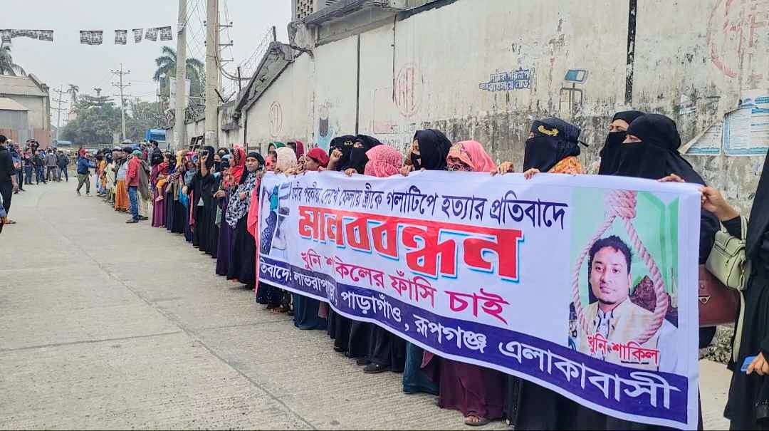 মোঃআবু কাওছার মিঠু রূপগঞ্জ-নারায়ণগঞ্জ-প্রতিনিধি।। নারায়ণগঞ্জের রূপগঞ্জ উপজেলার গোলাকান্দাইল ইউনিয়নের শিংলাবো গ্রামের গৃহবধূ হাফসা আক্তার কাকলী-২৭- হত্যা মামলার আসামীদের গ্রেফতারের দাবীতে