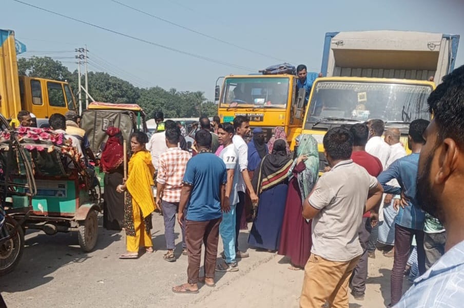 রূপগঞ্জে বকেয়া বেতনের দাবিতে গার্মেন্টস শ্রমিকদের মহাসড়ক অবরোধ