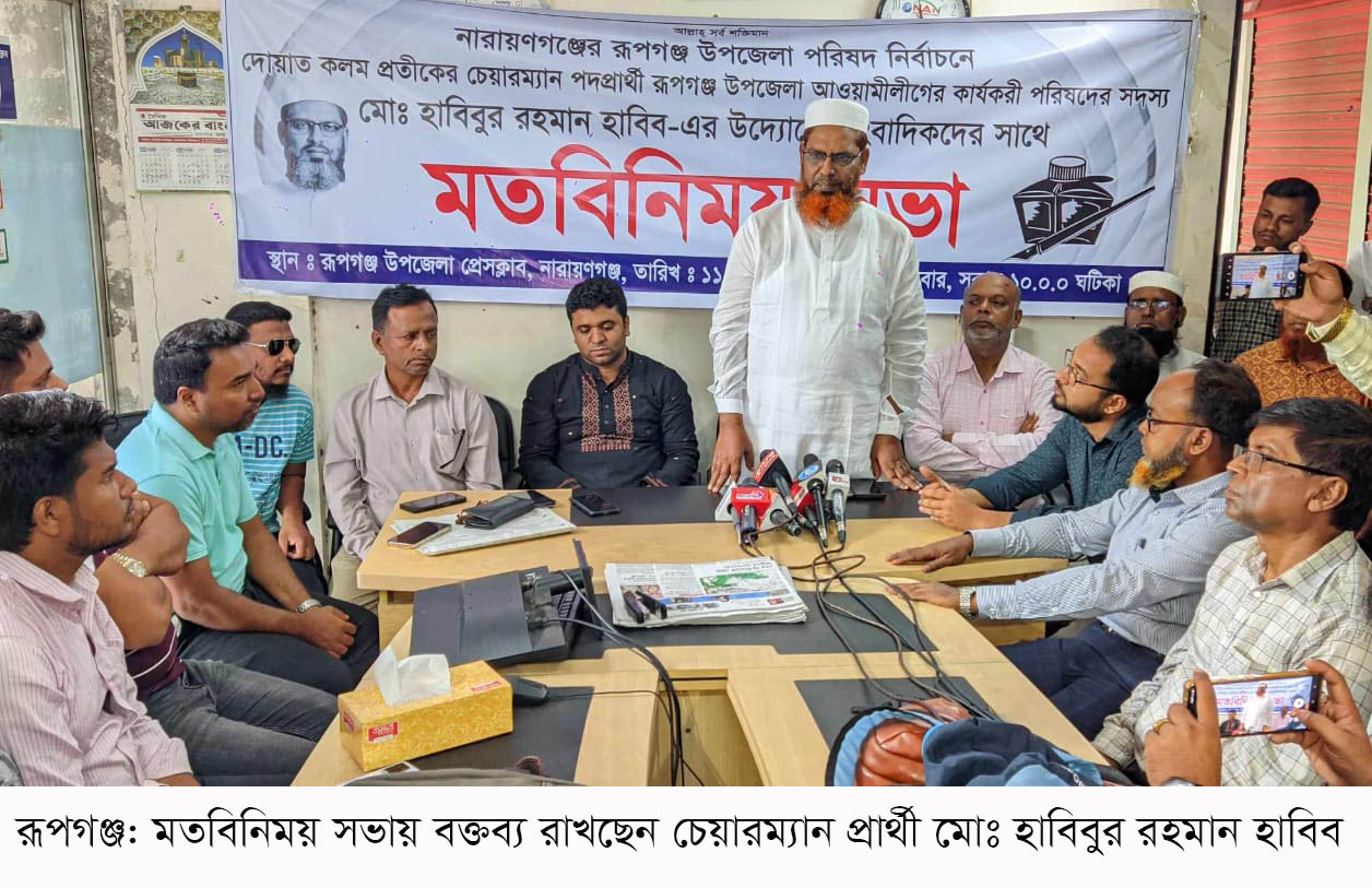 দৈনিক আজকের বাংলা ডেস্ক॥ নারায়ণগঞ্জের রূপগঞ্জ উপজেলা প্রেসক্লাবের সাংবাদিকদের সঙ্গে উপজেলা পরিষদের দোয়াত কলম প্রতীকের চেয়ারম্যান প্রার্থী মোঃ হাবিবুর